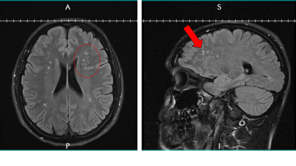 The white spots on the MRI are known as white matter hyperintensities and are not expected in someone my age